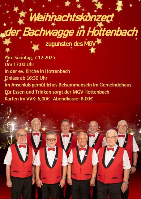 Karten zu unserem Weihnachtskonzert können sie direkt in Hottenbach bestellen unter: janinebartz@web.de
